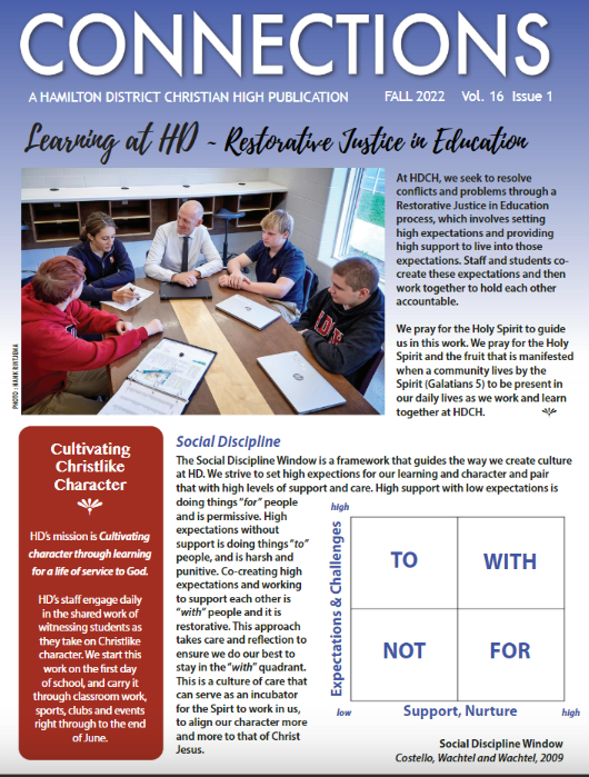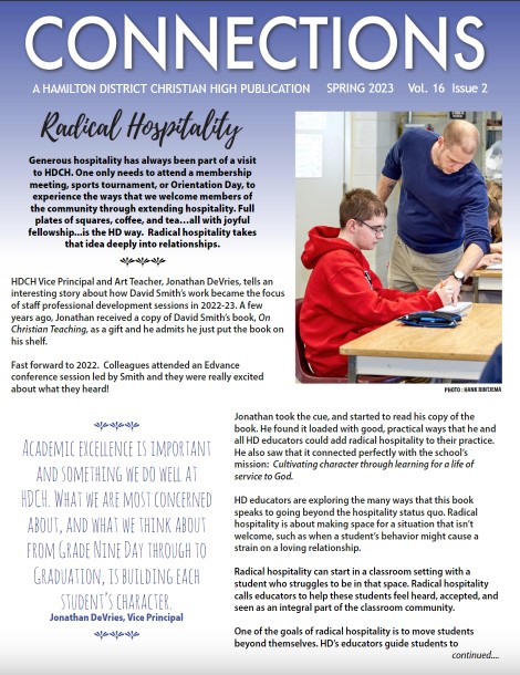 Established in 2007, Connections profiles the successes of the Hamilton District Christian High community – alumni, students, faculty, donors and staff. The publication comes out twice a year and is distributed free of charge to a circulation of more than 4,000.