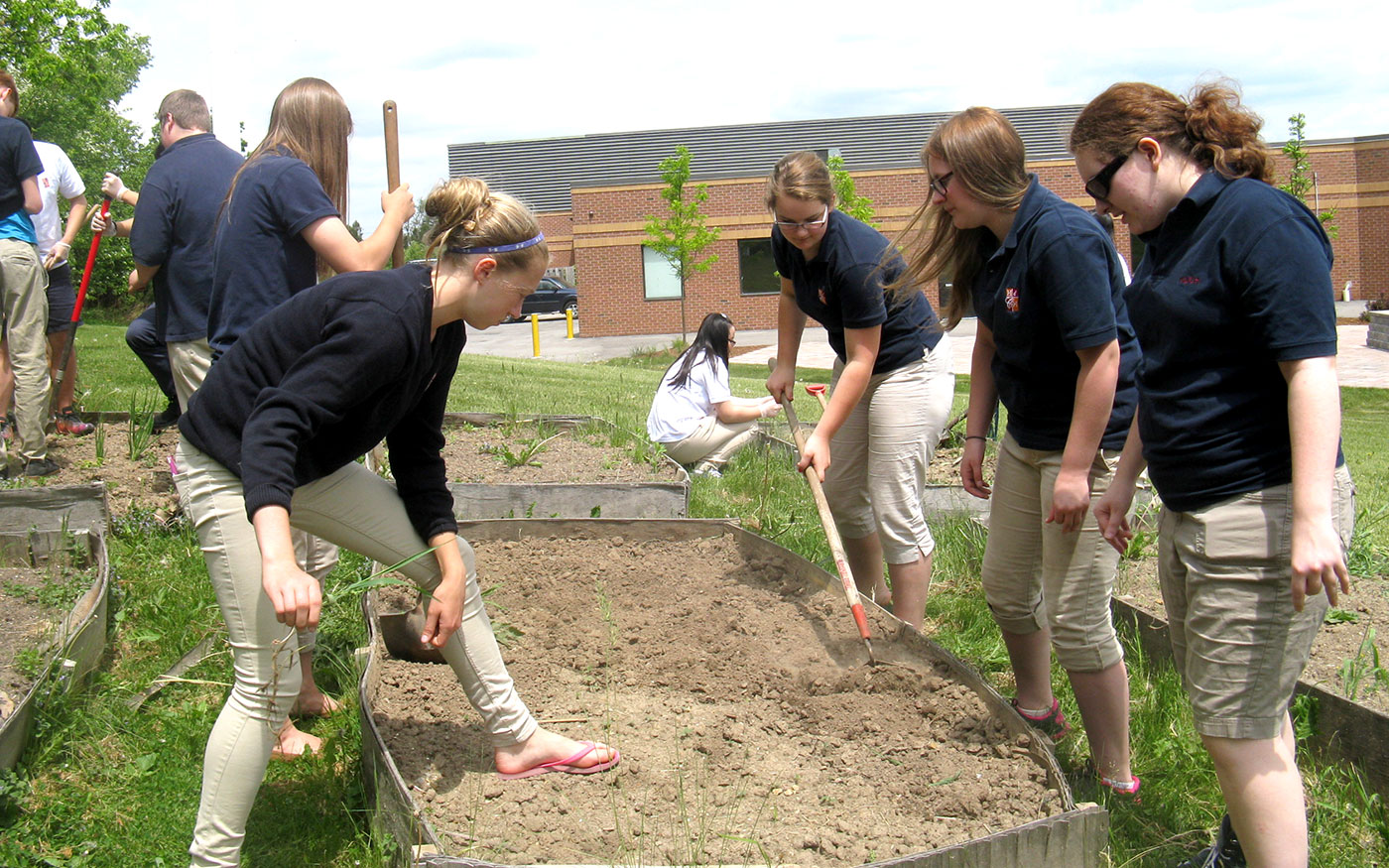 Hamilton District Christian High Foods class students have been preparing garden beds on the school property so they can transplant culinary herbs that they have grown from seed.